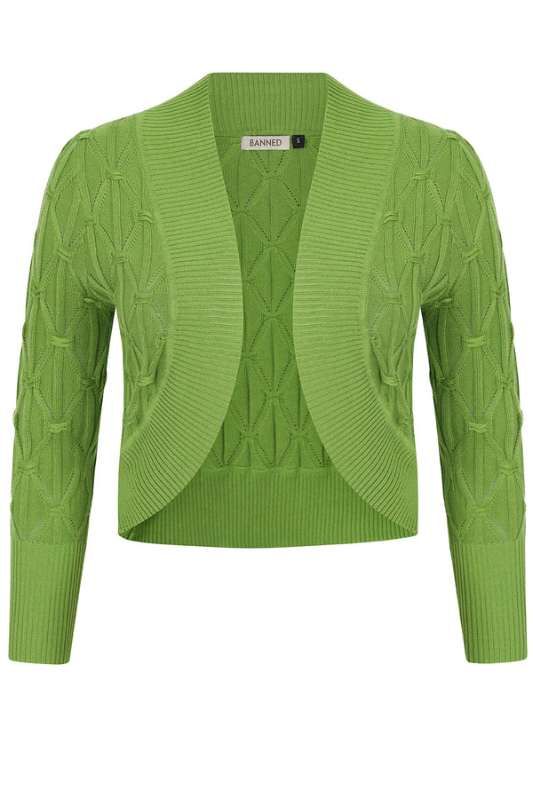 Beautifully crafted Bolero featuring an elegant diamond knit pattern. This retro-inspired bolero showcases intricate textured knitting throughout with ribbed trim detailing. The open-front design and cropped length make it perfect...