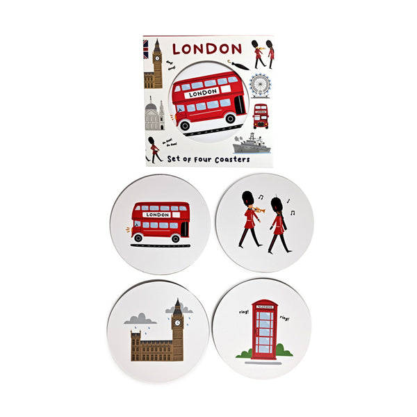 Set of 4 Cork Novelty Coasters - London Souvenir