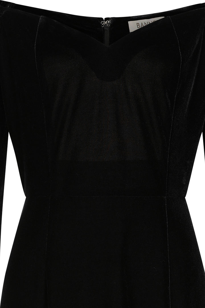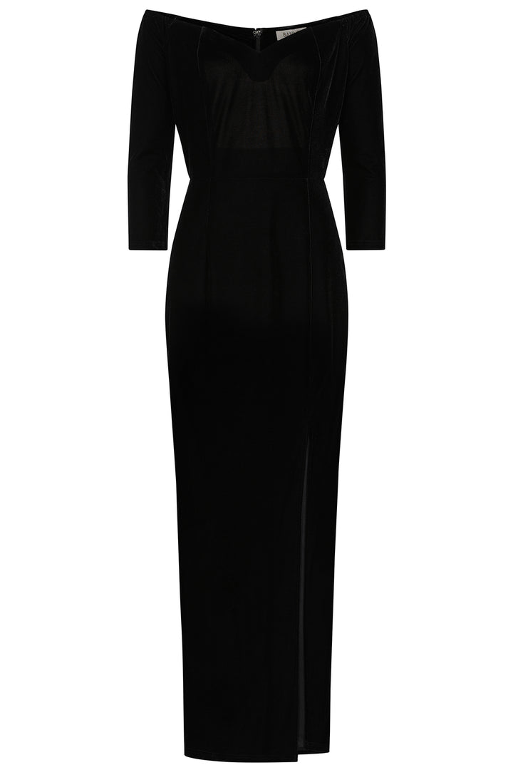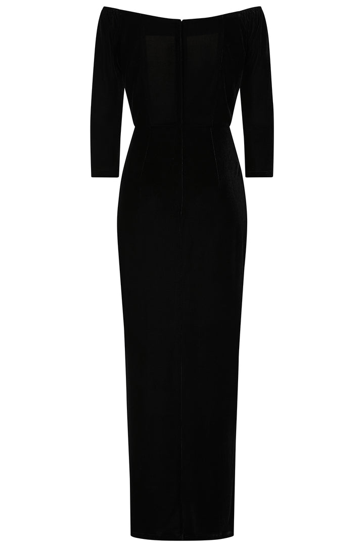 Banned's elegant fitted maxi dress crafted in luxurious velvet with graceful off-shoulder design and 3/4 sleeves. Perfect for those seeking timeless glamour with a gothic touch.