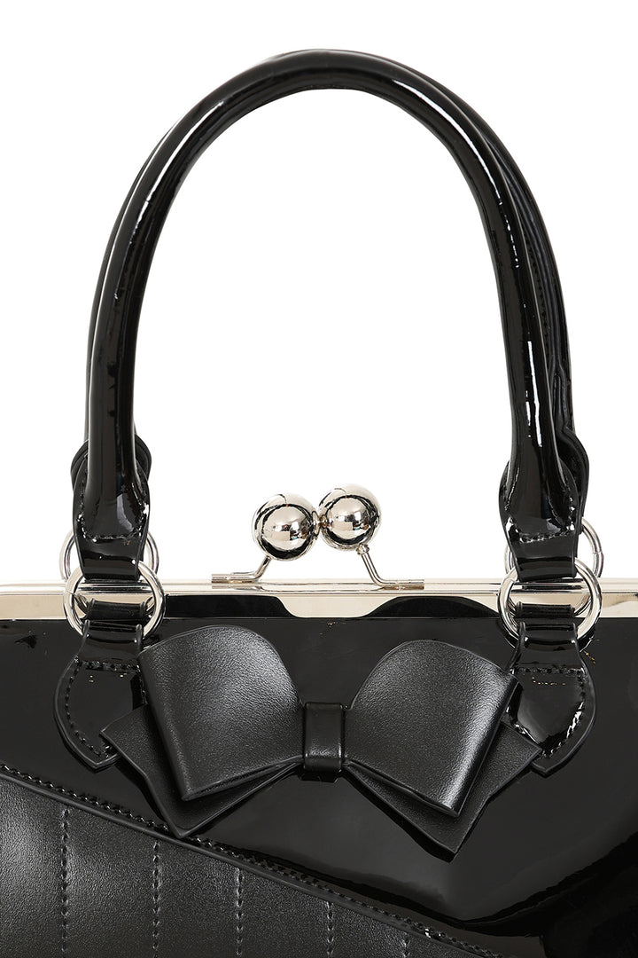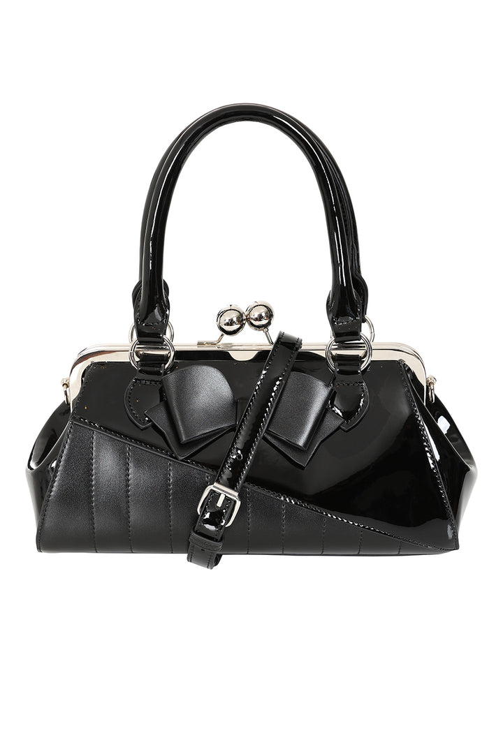 The Banned Bonne Nuit Handbag captures the elegance of the 1950s with its classic clasp closure, quilted panel, and charming retro bow detail. This sophisticated bag comes with a detachable shoulder strap, offering both style and versatility, making it the perfect accessory for vintage lovers seeking a touch of timeless charm.