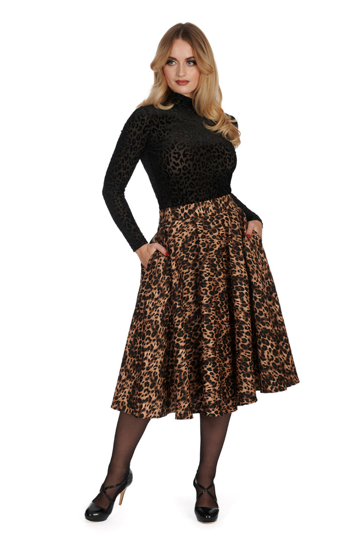1950's Cotton elastane swing skirt with centre back zip & side seam pockets. COLOUR MAY VARY IN DIFFERENT PRODUCTION LOTS
