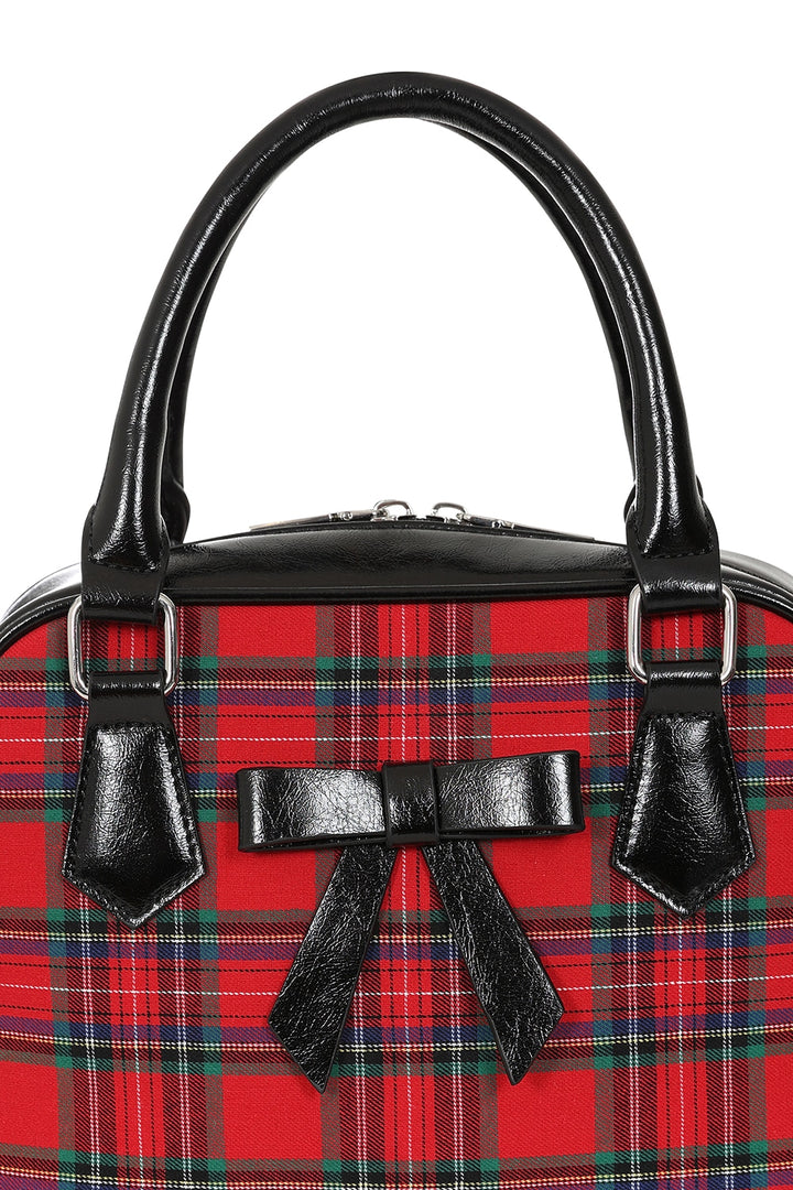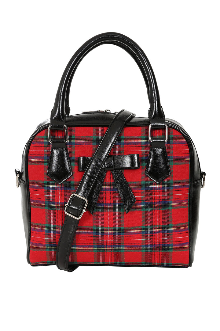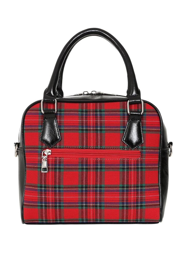The Banned Chic Charlotte Handbag is a retro-inspired piece, featuring a medium-sized tartan design and a secure zipper closure. This stylish bag is both functional and fashionable, with a detachable shoulder strap for added versatility. Perfect for adding a classic touch to any outfit while providing ample space for your essentials.