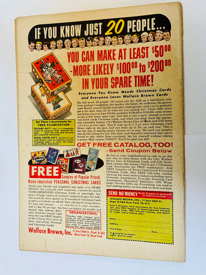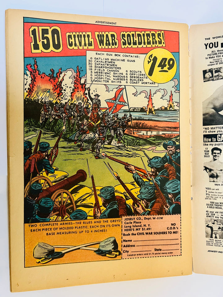 4.0 Grade - An average, second-hand, obviously read copy with marks and minor defects but still respectable and appealing. Printing lustre almost gone but not soiled or heavily stained and no tape evident, apart from a small piece of magic tape to repair a tear. There is noticeable wear on the spine and even the start of a spine roll and one staple may be slightly loose. The pages may be yellowing with the first signs of slight browning at the edges. The cover could have a tear or crease or the centrefold could have come away from the staples inside. NO PAGES OR PARTS MISSING. It must be complete in every way. For British comics, all the above applies though there will be slightly more edge and corner wear.