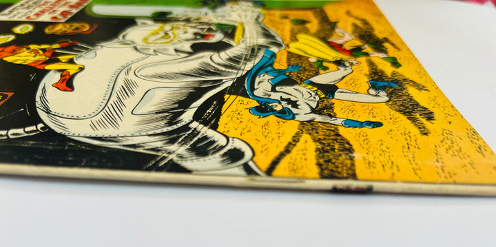 5.5 Grade - The basic minimum for most collectors but depends on your budget! This is a comic with wear showing on the edges or stress around the staples. Still clean and flat with a small mark or cover writing but I do mean small. Pages may be yellowing slightly but no brown edges. Above average, read a few times and stored away with at least some concern. A staple may be detached but, if that' the case, the rest of the comic should appear Very Fine. For British comics, a little more wear on the spine and cover is permissible and there may be some corner curl evident. British comics are all shapes and sizes so corners and edges suffer more. Again, think that this is a comic that has clearly been looked after in its history.
