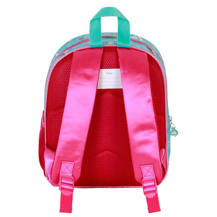 Size: 11x26x31cm. Preschool backpack with a single compartment. Includes an identification tag on the back. Front embossed design and side mesh pocket. Padded back and shoulder straps.