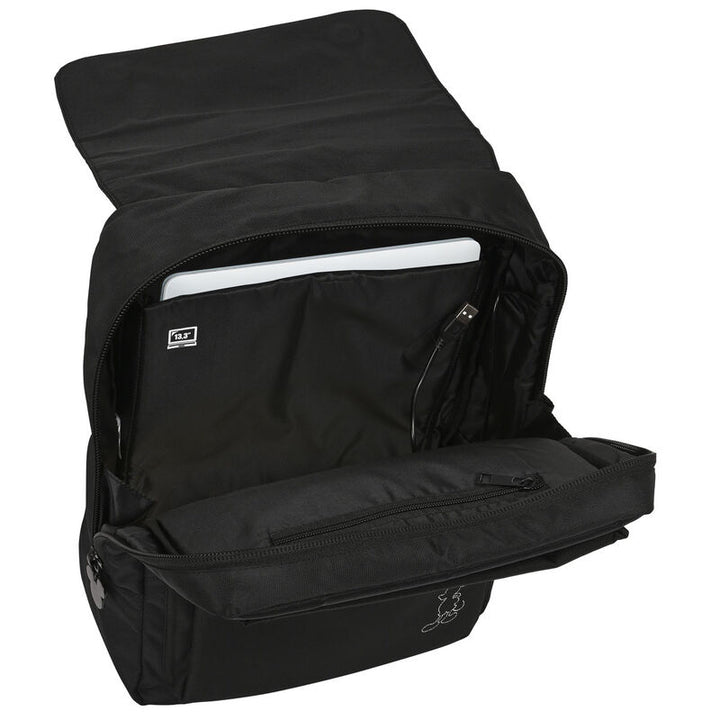 Size: 29x39x12cm. Large size zipped main compartment with 13,3 laptop compartment. Interior zipped pocket. Double puller on main zip for easy opening. Large front pocket with magnetic flap closure. External USB connector for mobile phone charging. Ergonomic padded back and shoulder straps with breathable mesh. PVC zip straps between the shoulder straps to keep it fully attached to the body. Back strap adaptable to the handle of the suitcase. Hand strap at the top of the bag.