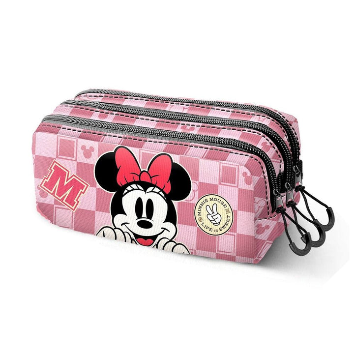 Size: 11x23x10cm. School pencil case with 3 zipped compartments. Made of high resistance material (Ripstop). Back strap for trolley transport. Inner lining.
