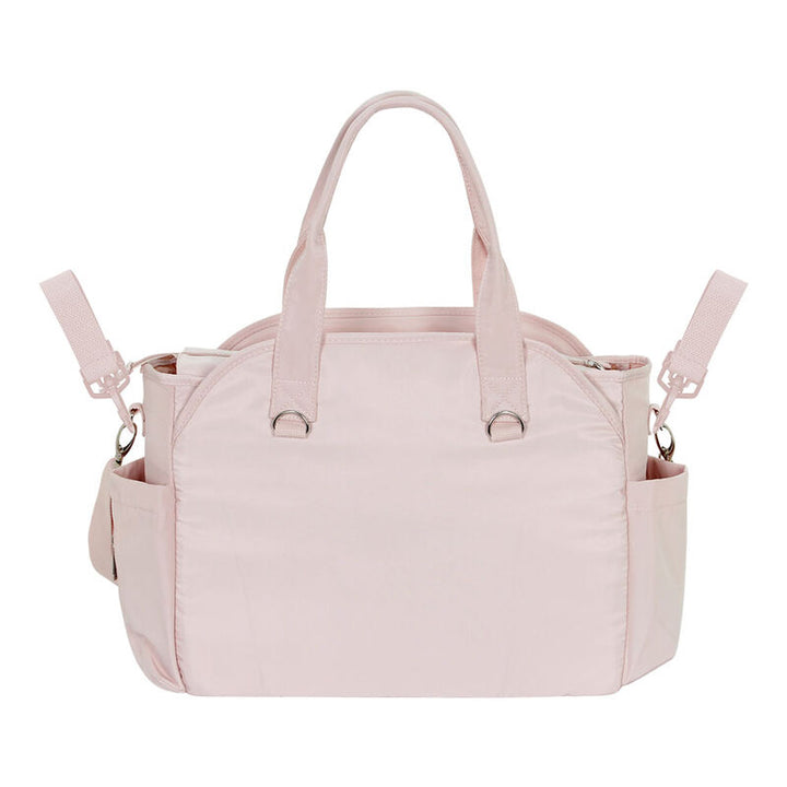 Size: 32x44x17cm. Bag for baby pram. Liquid repellent outer body with large opening for easy access. Inner lining with 5 pockets to organise your belongings. Side pocket with zippered dispenser for wipes or tissues and three additional exterior pockets. Two handles for carrying by hand and adjustable shoulder strap.