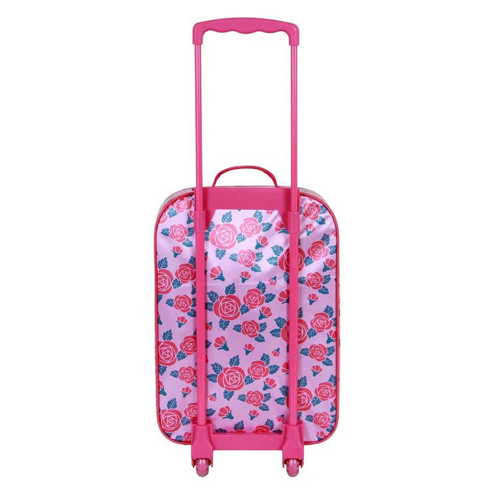 Size: 52x33x17cm. Soft childrens suitcase with embossed front. 2 wheels for easy movementSize valid for hand luggage. Adjustable handle.