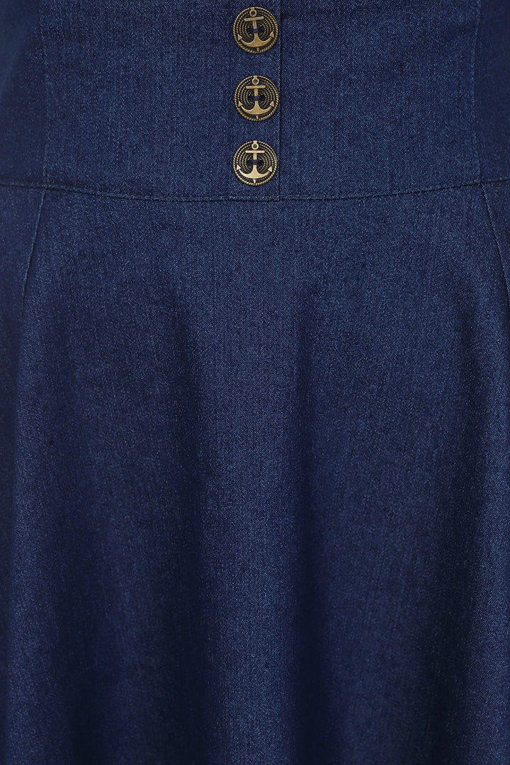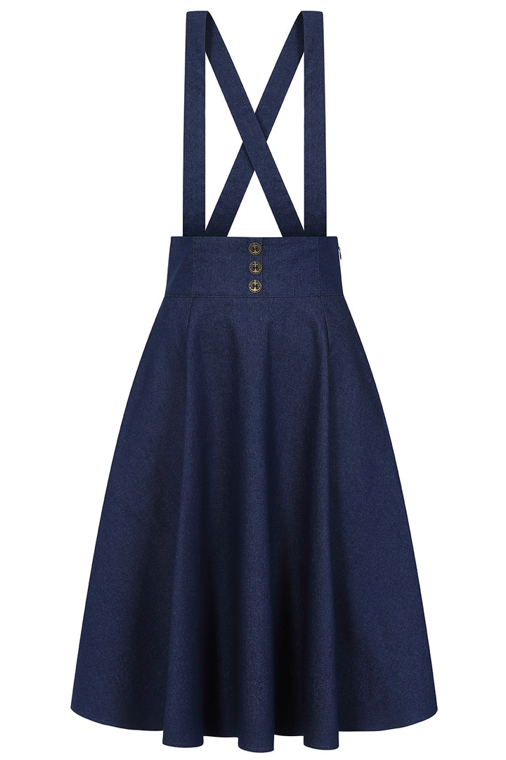 Swing flare highwaisted skirt with braces , side seam pockets, button detailing at front wasitband.