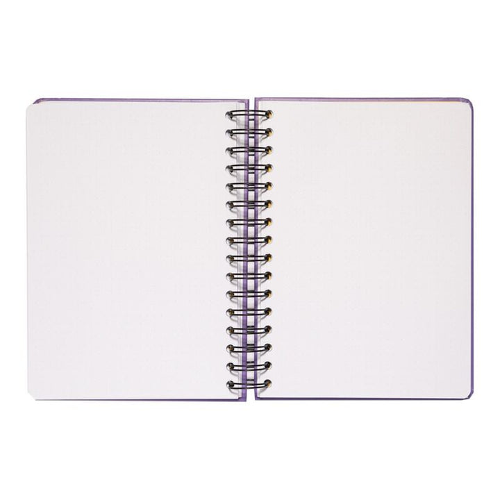 It has 90 A5 size sheets. Hardback covers with wire-o binding. Elastic band closure. Includes inside pocket. Rounded outer corners.