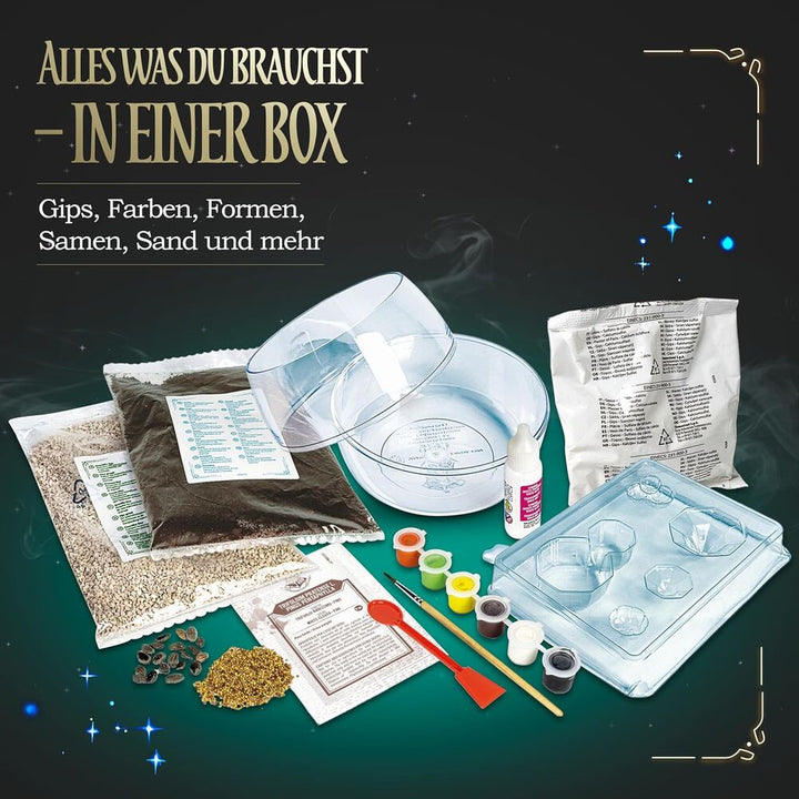 Age: 7+ years. A fantastic set to create a personal miniature ecosystem with a truly magical setting, in perfect Harry Potter style. Includes plaster, moulds and gouache to create Hagrids fantastic hut with typical pumpkins, children can have fun using seeds, peat, soil, sand and stones to create a natural landscape full of plants around Hogwarts.