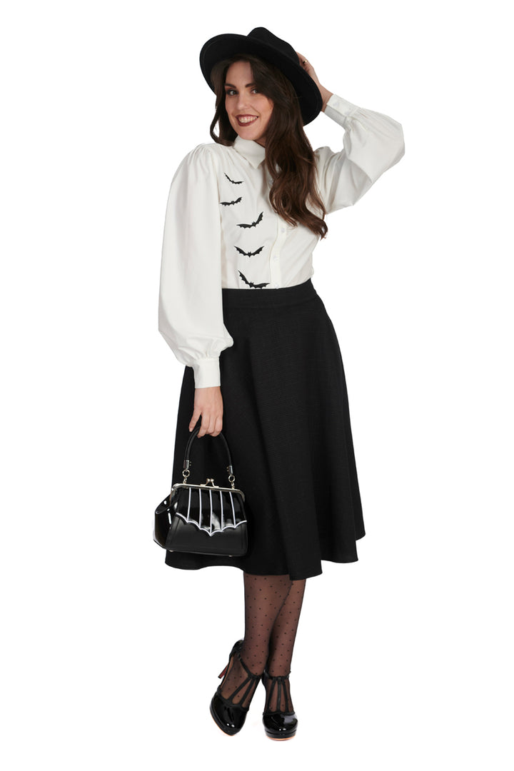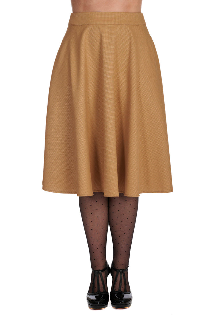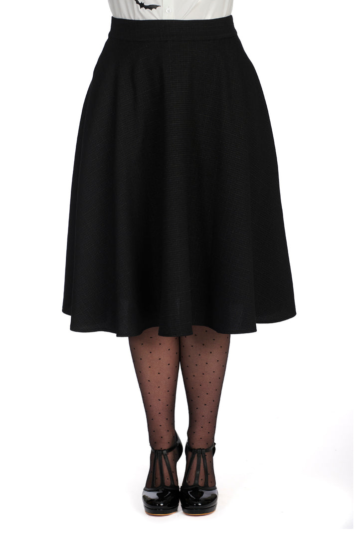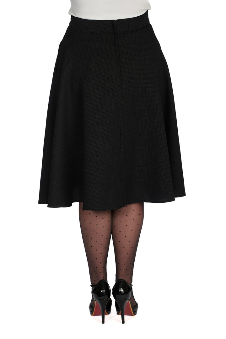 1950's brushed feel woven houndstooth swing skirt with side seam pockets & centre back zip opening.