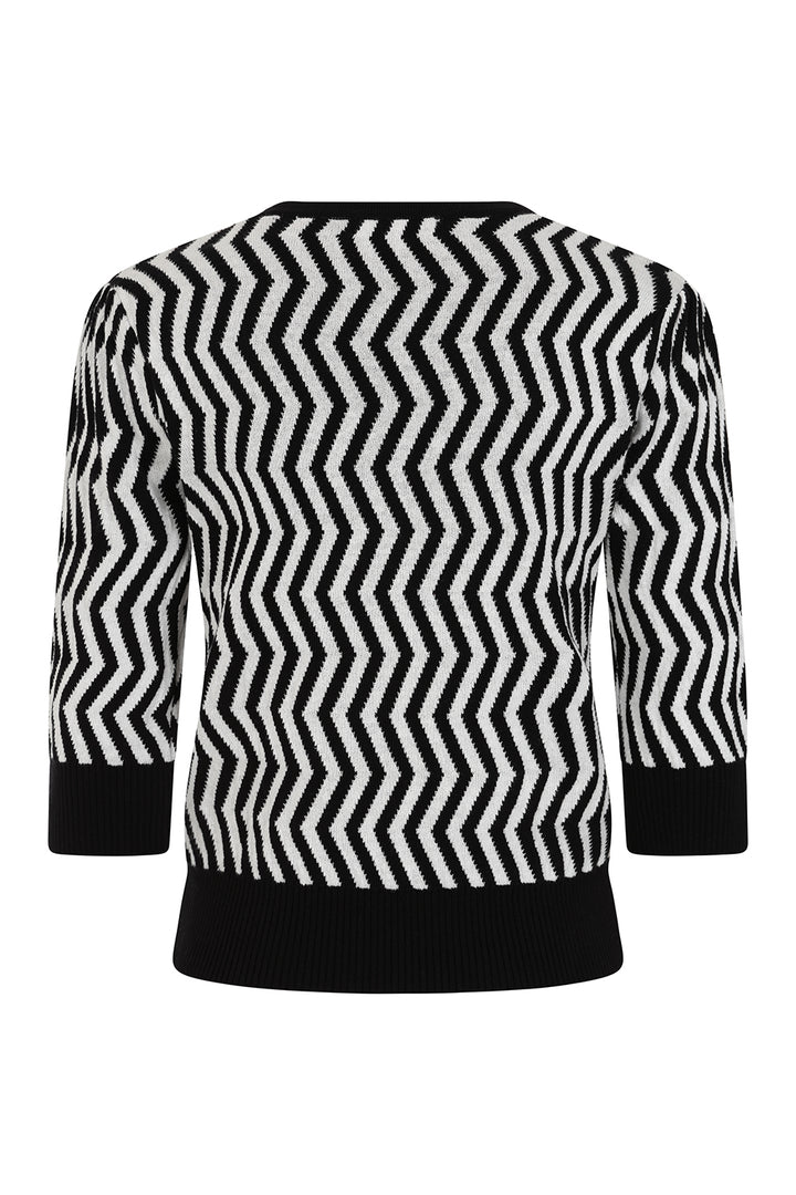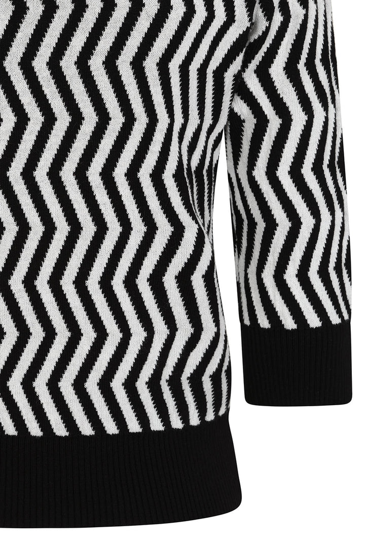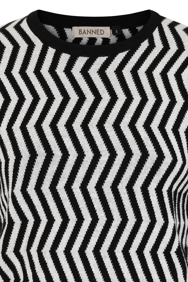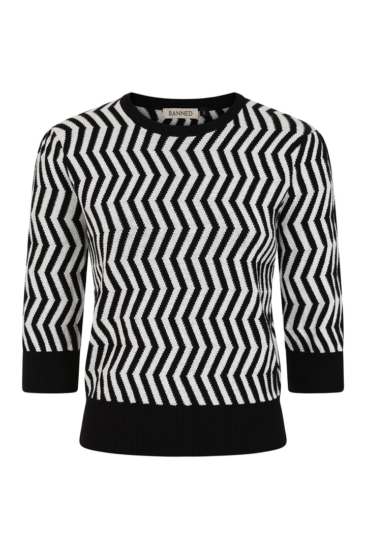 Banned's vintage-inspired jumper featuring dynamic zigzag jacquard pattern and 3/4 sleeves. Perfect blend of 40s style with geometric retro design.