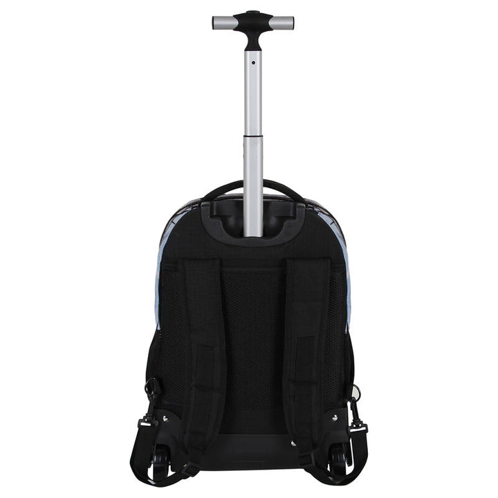 Size: 47x32x27cm (wheels included). School backpack with 2 integrated wheels. Two compartments, one front pocket and two side net pockets. Telescopic handle adjustable to 2 heights.