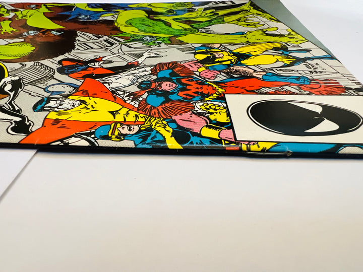 8.5 Grade - Very slight wear beginning to show around the staples and stress points owing to the comic being opened and read (carefully) two or three times and stored away with some care. For American comics, most of the cover lustre still remains and for British comics the cover should be flat, uniform creamy or off-white with only a few very minor stress creases at the spine. For American comics, only the tiniest spine wear at the top or bottom but no cover marks, no tears, no prominent creases (perhaps 2mm and quite hard to spot). The pages can be creamy or off-white but in no way yellowing and with no darker page edges. For Very Fine, think simply Very Sharp.
