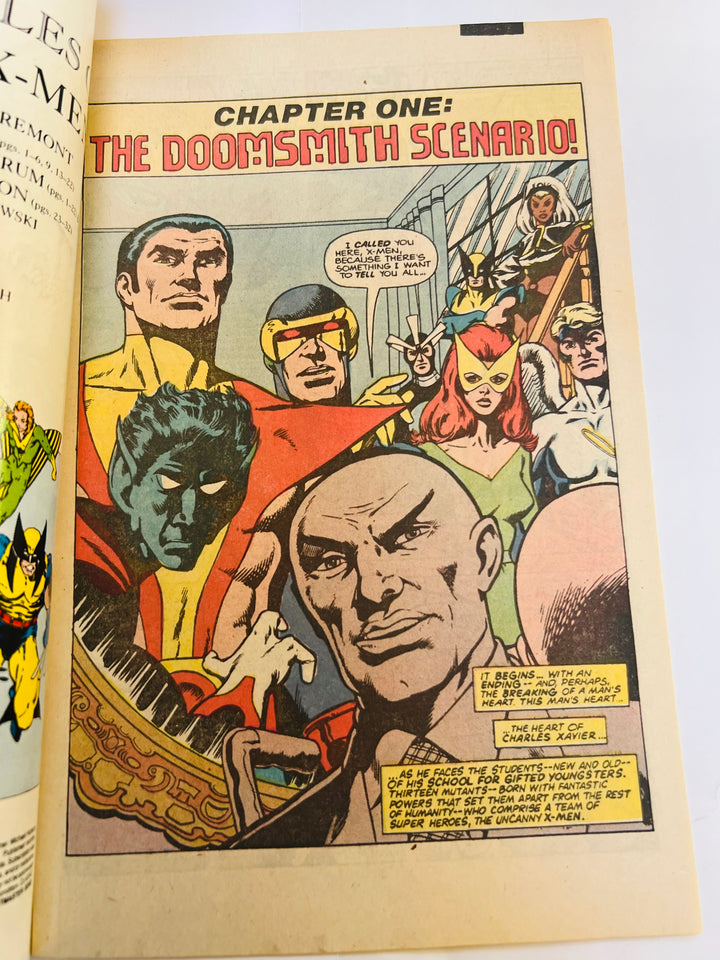 Professor X congratulates the assembled X-Men old and new on the success of their recent mission. He also wants to talk to them about the future and asks all the new members to remain on a permanent basis. Most of them agree, some hesitantly. When Banshee is asked to stay, he confesses his concern that he is too old for the team of young heroes, but accepts the challenge anyhow. Sunfire, however, refuses to be a part of a long-term team and leaves.