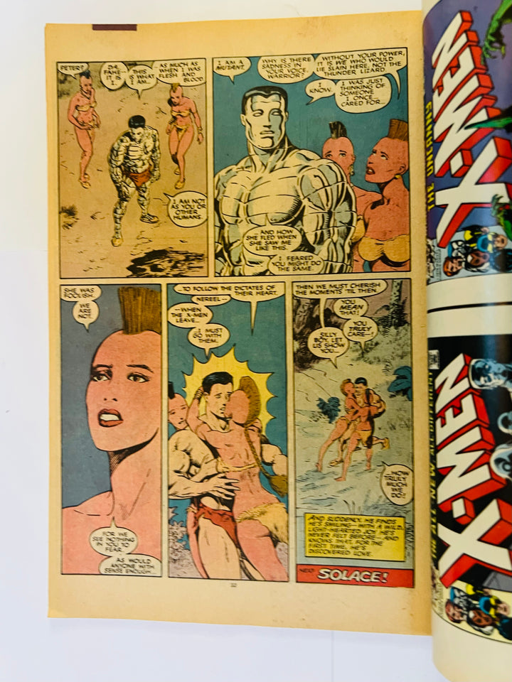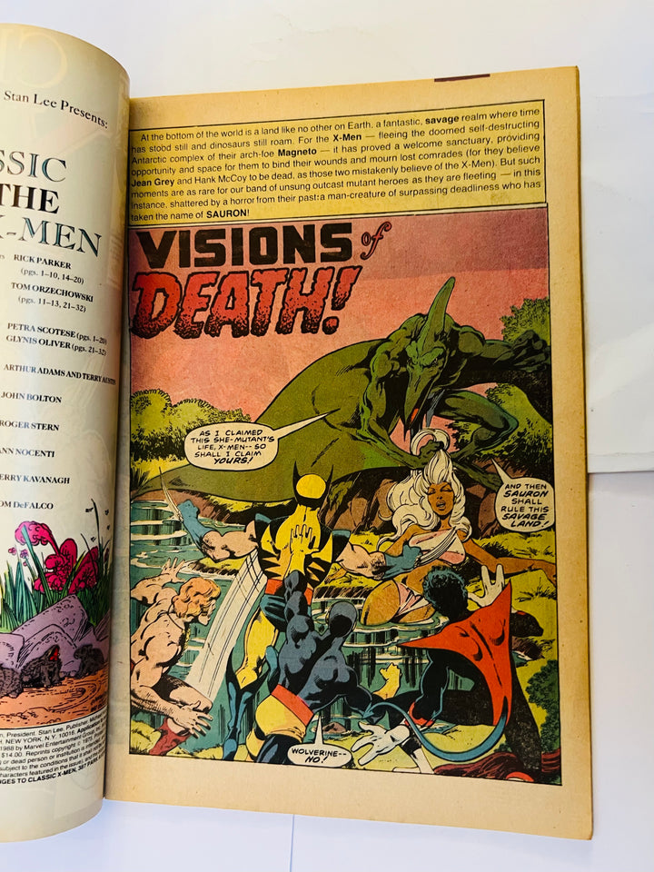 Sauron has left Storm unconscious as he confronts the X-Men. Wolverine acts first, lunging at their foe with claws ready only to be struck by the creatures hypnotic powers. Sauron makes Wolverine see the other X-Men as demons and he attacks his team mates Cyclops knocks Wolverine out with an optic blast so that they can concentrate on stopping Sauron.