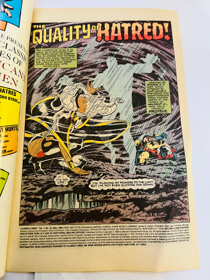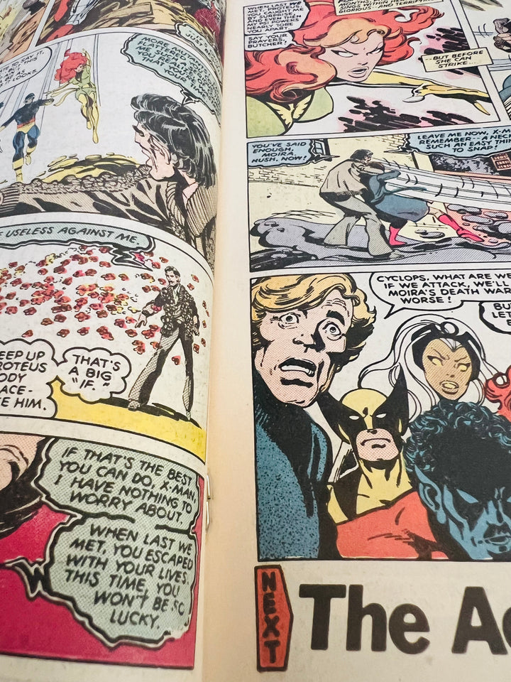 As Proteus closes in on her, intent on stealing her physical form, Storm risks flight once more, but Proteus warps space around her and brings her back to the ground again, this time knocking her unconscious. Just as Storm seems doomed, a sniper on a nearby ridge distracts Proteus.