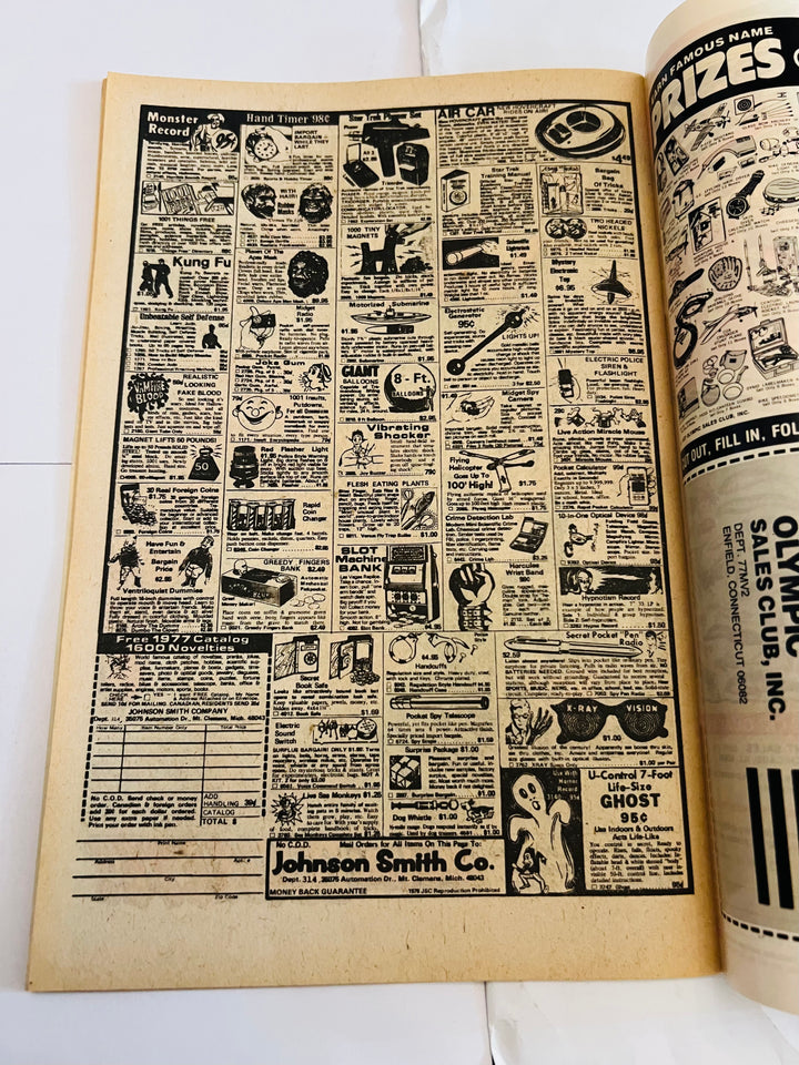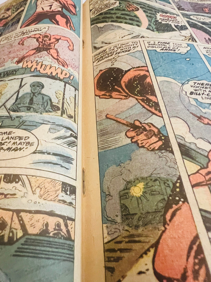 9.2 Grade - Almost perfect, almost as new, with white or off-white pages. Tight, flat and clean with only extremely light wear around an edge or a staple. At first glance you might think it is Mint but a second, closer inspection may reveal a tiny imperfection. The pages should be uniform in colour with no discernible edge difference. No staple rust. Near Mint really does mean near to mint condition. For American comics, a discreet UK pence stamp is permissible. For British comics, a neat, newsagent name (ideally in pencil) written at the top is permissible.