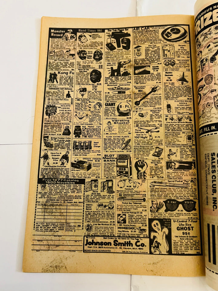 9.2 Grade - Almost perfect, almost as new, with white or off-white pages. Tight, flat and clean with only extremely light wear around an edge or a staple. At first glance you might think it is Mint but a second, closer inspection may reveal a tiny imperfection. The pages should be uniform in colour with no discernible edge difference. No staple rust. Near Mint really does mean near to mint condition. For American comics, a discreet UK pence stamp is permissible. For British comics, a neat, newsagent name (ideally in pencil) written at the top is permissible.