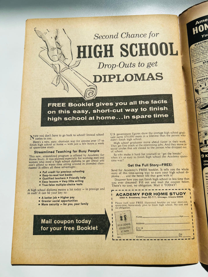 6.0 Grade - The basic minimum for most collectors but depends on your budget! This is a comic with wear showing on the edges or stress around the staples. Still clean and flat with a small mark or cover writing but I do mean small. Pages may be yellowing slightly but no brown edges. Above average, read a few times and stored away with at least some concern. A staple may be detached but, if that' the case, the rest of the comic should appear Very Fine. For British comics, a little more wear on the spine and cover is permissible and there may be some corner curl evident. British comics are all shapes and sizes so corners and edges suffer more. Again, think that this is a comic that has clearly been looked after in its history.