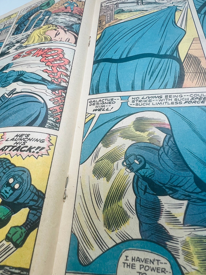 The Silver Surfer returns to the Fantastic Four for help, as Galactus is once again summoning him. Human Torch helps him hide from Galactus, while the Thing confronts the Punisher who was sent to find the Surfer. The Fantastic Four begin to overpower the Punisher, when he is teleported away and Galactus appears to search for the Surfer himself.