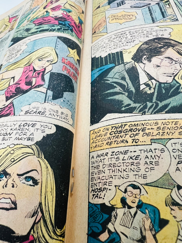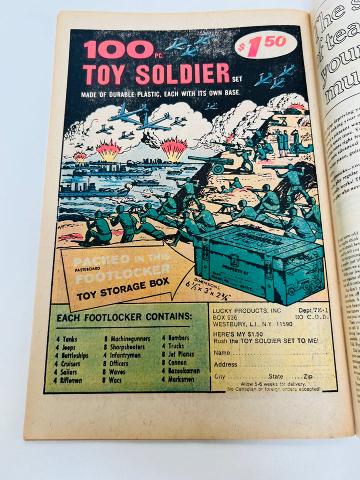 8.0 Grade - Very slight wear beginning to show around the staples and stress points owing to the comic being opened and read (carefully) two or three times and stored away with some care. For American comics, most of the cover lustre still remains and for British comics the cover should be flat, uniform creamy or off-white with only a few very minor stress creases at the spine. For American comics, only the tiniest spine wear at the top or bottom but no cover marks, no tears, no prominent creases (perhaps 2mm and quite hard to spot). The pages can be creamy or off-white but in no way yellowing and with no darker page edges. For Very Fine, think simply Very Sharp.