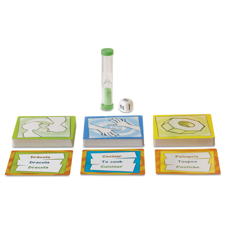Recommended age: +8 years. Number of players: +4. Box size: 10,5x10,5x5,5cm. Psychopedagogical aspects: Reasoning, Spatial vision, Imagination and creativity, Cooperation and leadership, Verbal expression and communication, Vocabulary. Mimic is a delirious game of mime and sounds in which, in turns, one player from each team has to act out as many words as possible. The die indicates the number of words that have to be interpreted, get right and form a sentence in one minute. If there is time left over, you can take a risk and roll the die again to get more cards. But be careful, if you run out of time and you have not resolved all the cards in play, you will lose as many cards as the die indicates at that moment. The cards are divided into three categories: Actions, Objects and Characters. How would you guess Lady Gaga or Drag Queen? Contains 105 pieces.