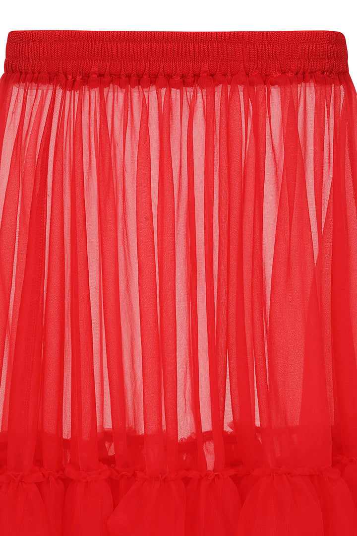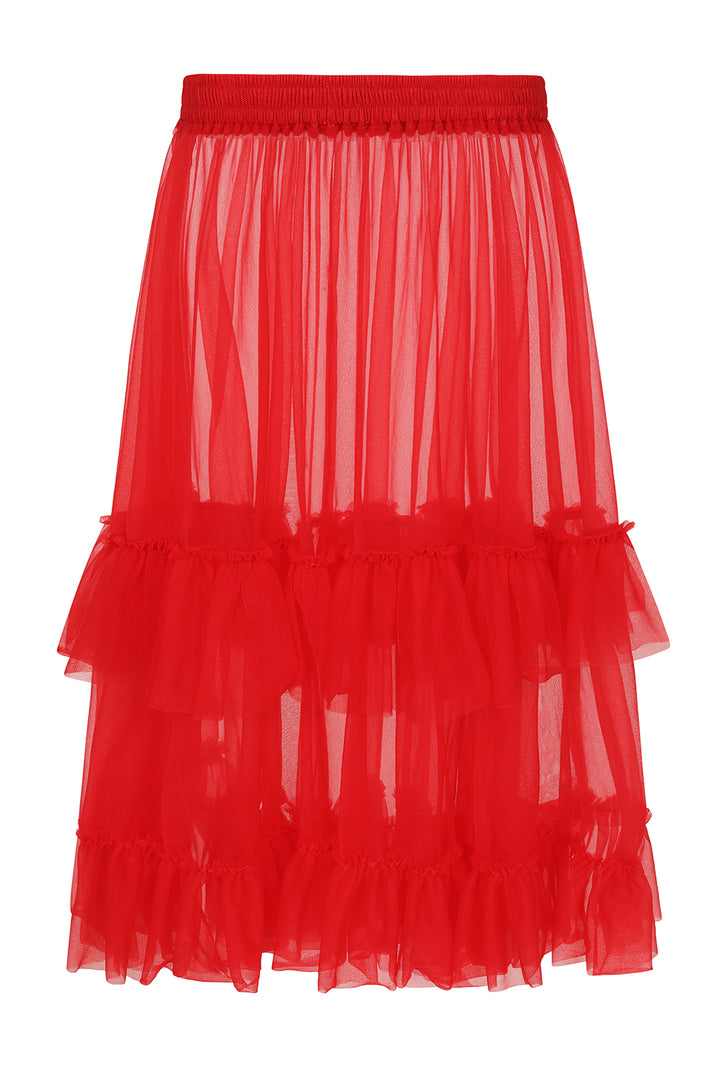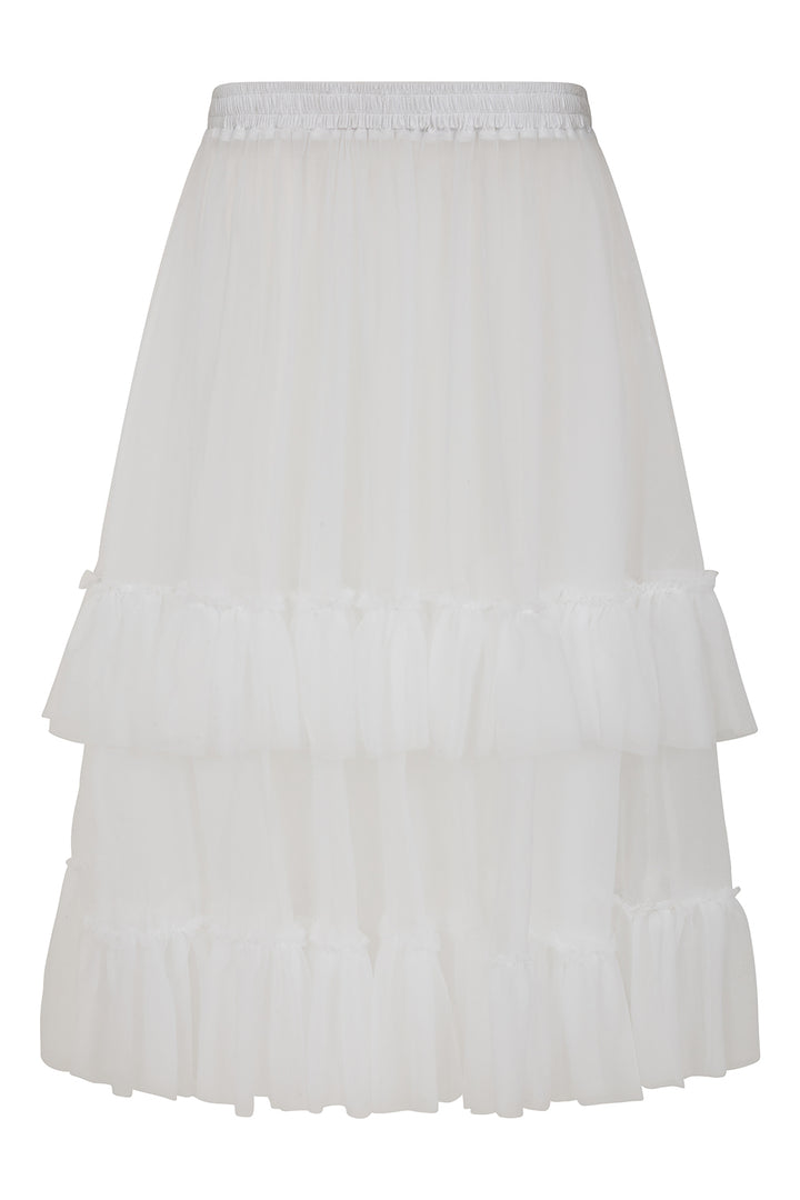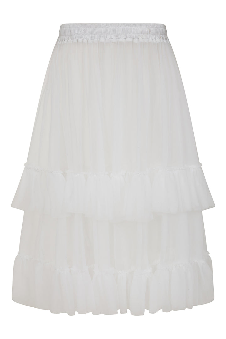 Banned's lightweight vintage-inspired petticoat featuring two delicate frills and comfortable elastic waistband. Crafted in signature soft mesh. Perfect for creating subtle volume while maintaining elegance.