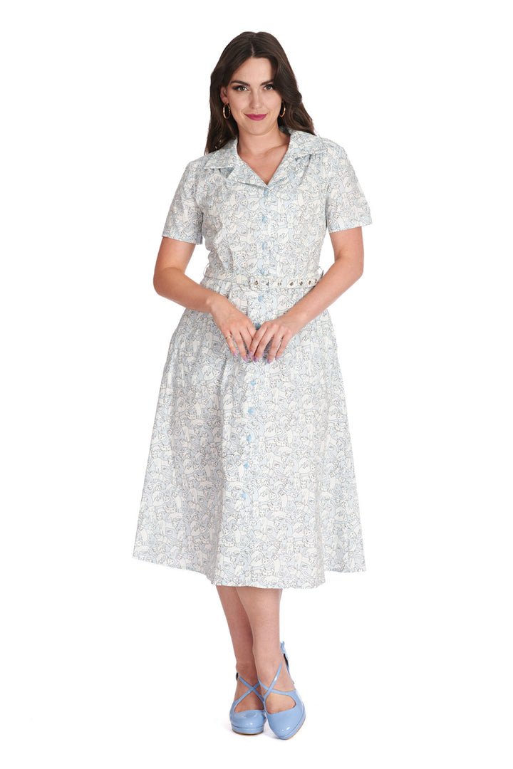 BUTTON THROUGH COLLAR DRESS WITH SHORT SLEEVE AND BELT