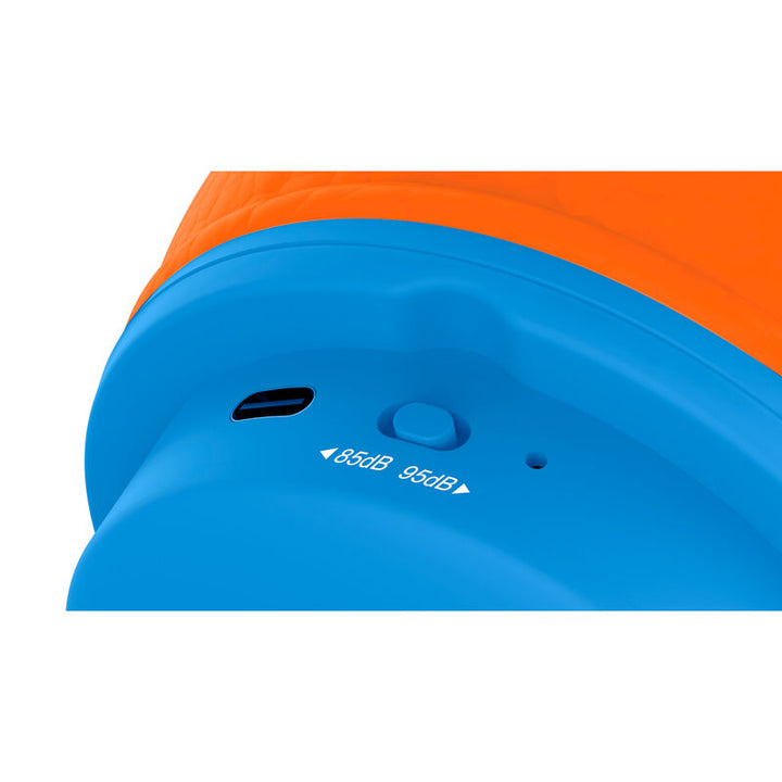 Suitable for children aged 3 years and up with two different safe sound volume settings of 85 dB and 95dB. Built-in 500 mAh battery provides up to 24 hours of playback time Fully charged in approximately 2 hours with USB Type-C charging cable. Range of 10 metres. Extendable adjuster for a flexible custom fit for any head shape Lightweight, durable, foldable, flexible and comfortable swivel design while in use. Additional 3.5mm audio cable included.