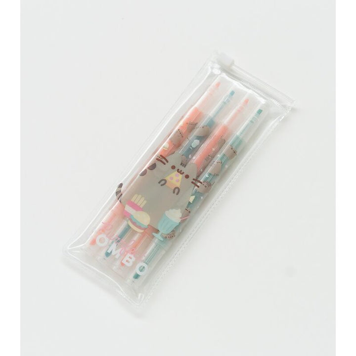 Contents: 10-colour biros with 3D topper, 4 highlighters in pastel shades in a PVC sleeve, 2 paper clips with topper, adhesive markers and a PU and PVC zippered pencil case.