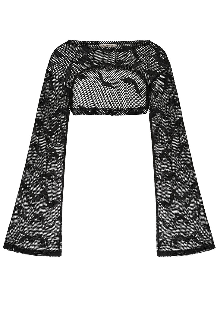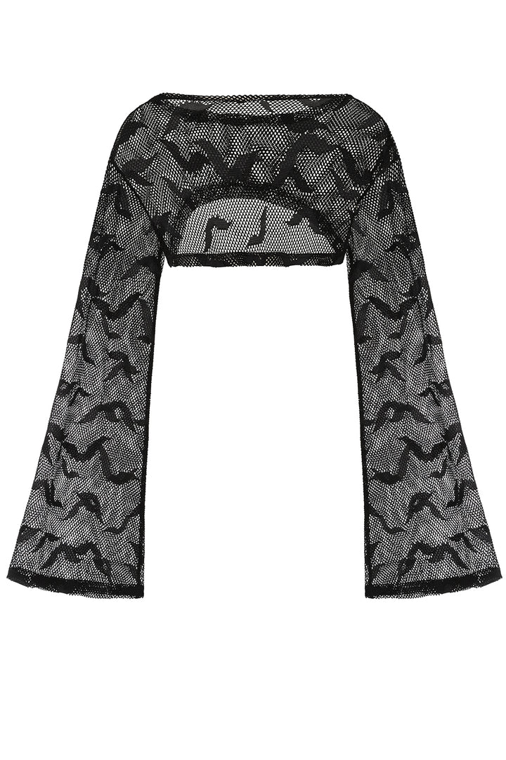 This in-house design Bat Fishnet Top is a unique and bold fashion statement. Crafted from black fishnet material, it features an intricate bat-inspired pattern that adds a gothic and edgy aesthetic. The cropped design pairs beautifully with high-waisted skirts or trousers, while the wide, flared sleeves create a dramatic silhouette. The off-the-shoulder cut enhances its alternative vibe, making it perfect for layering or as a standout piece for events, festivals, or everyday alternative fashion. Lightweight and breathable, this top seamlessly combines style with comfort.