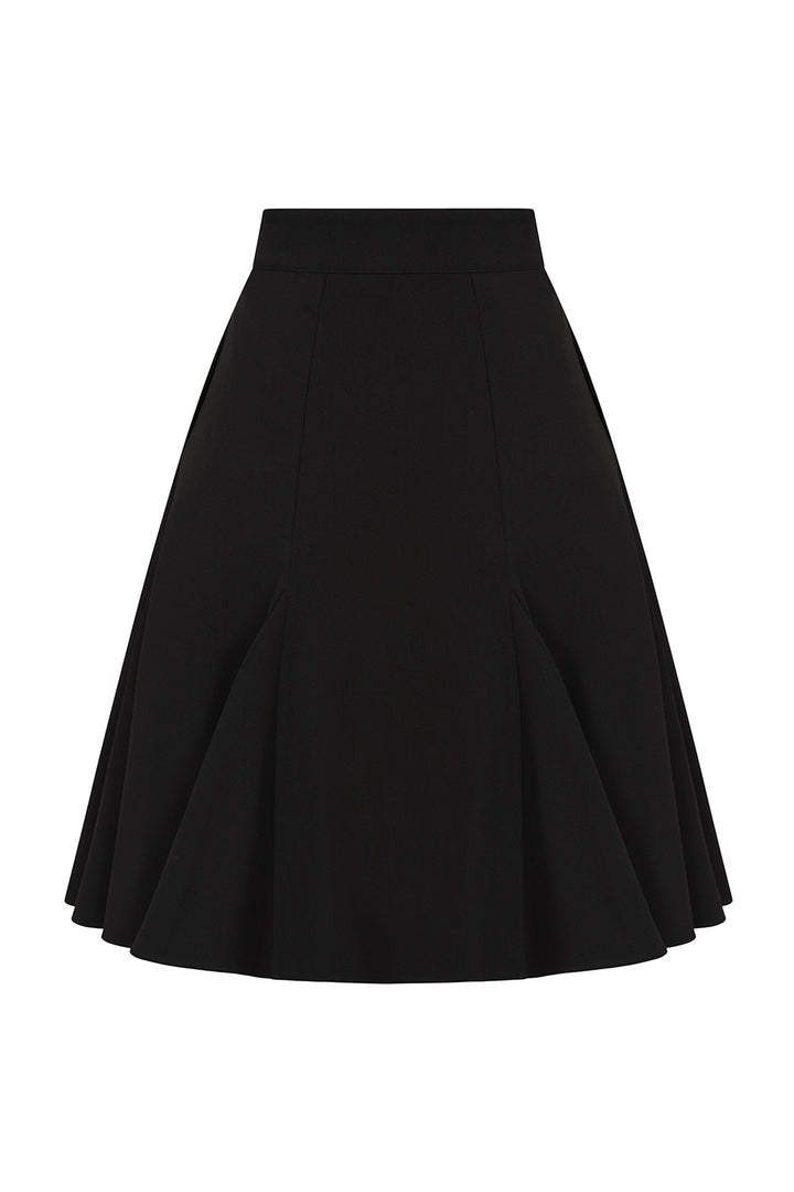 This beautiful 1940's inspired Sienna Banned Retro skirt boasts front and back godet seams creating a flattering fit and flare skirt. Highwaisted fit and side seam pockets means this skirt is not only comfortable and practicle but also elegant and classic. Perfect for office or dressed up for an evening out. Woven yet soft fabric with a luxe feel.