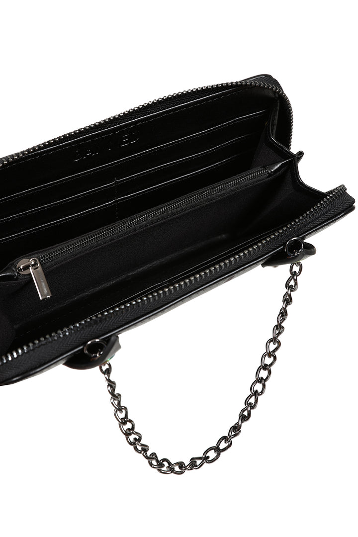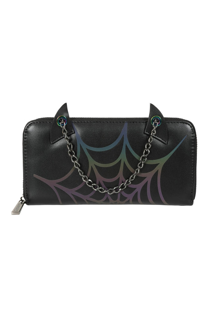 This wallet is the blueprint with its hypnotic holographic web print that's giving iridescent dark fantasy. The chain detail elevates your aesthetic game while keeping your cards secure. Not your basic wallet - it's a whole vibe.