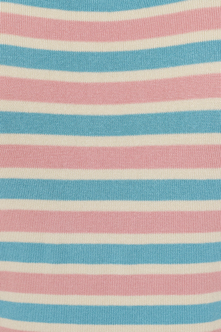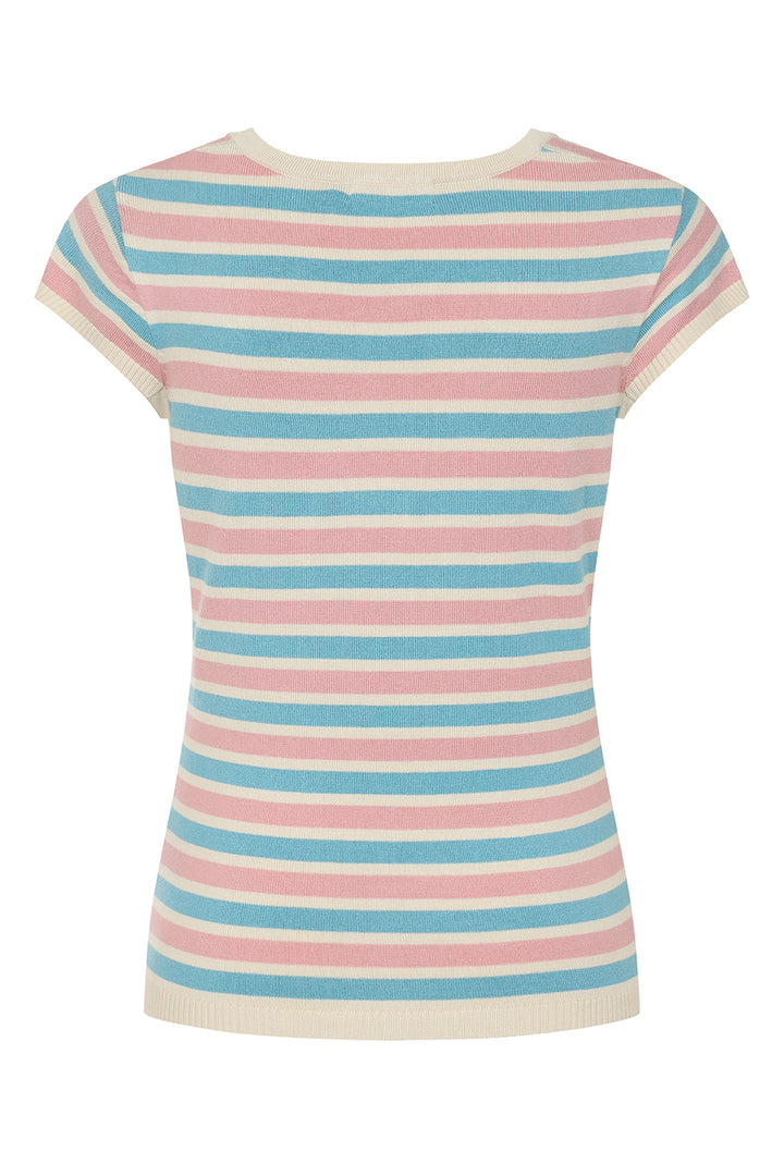 Viscose mix stripe jumper with contrast piping ar neckline.